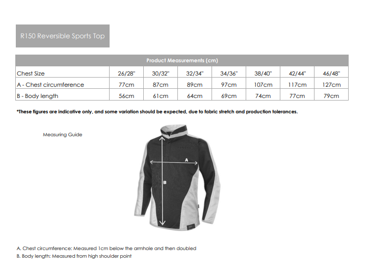 Please see below the P.E T-Shirt sizes in relation to the sizing of the new-style rugby tops