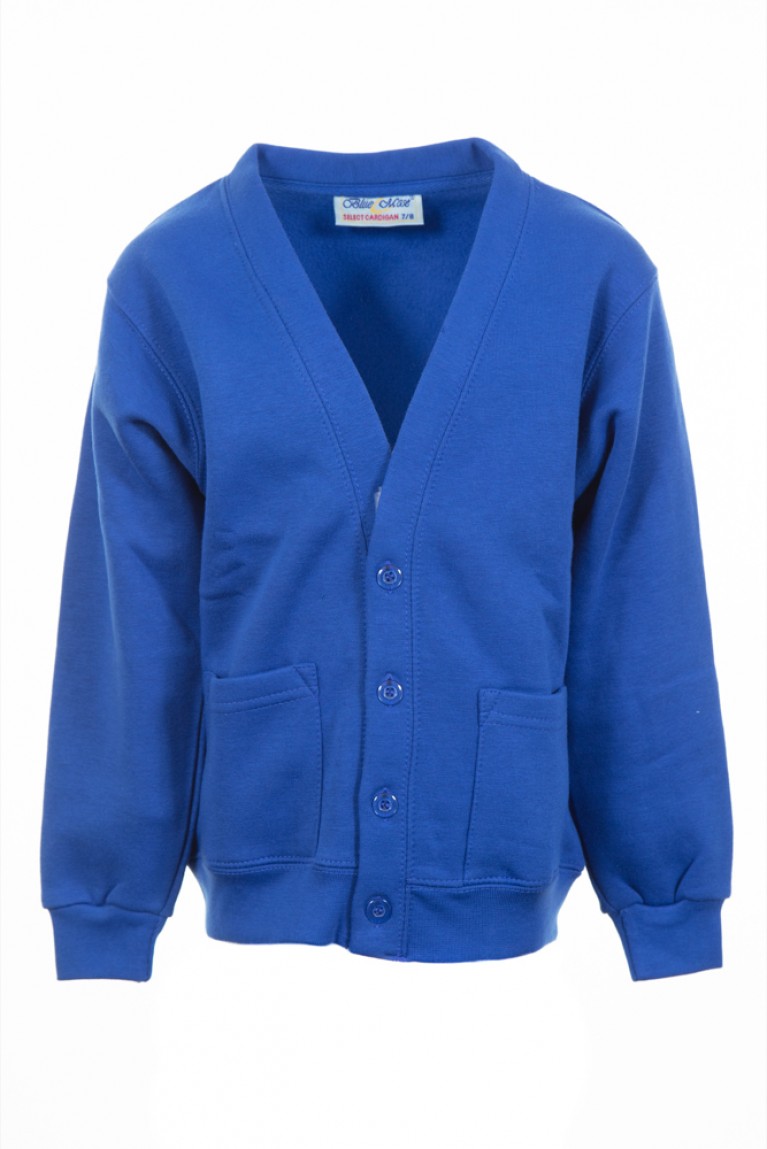 Blue cardigan.