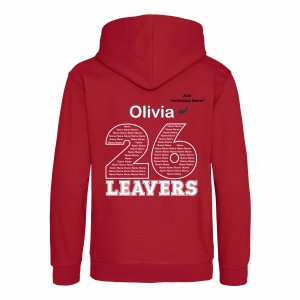 Children's names will feature in the number '26' on the back design of the leavers hoodies (example in images) (children's names have already been provided)