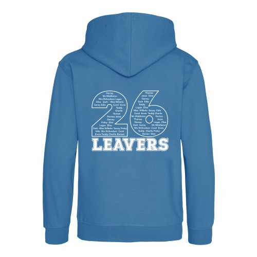 Children's names will feature in the number '26' on the back design of the leavers hoodies (example in images)